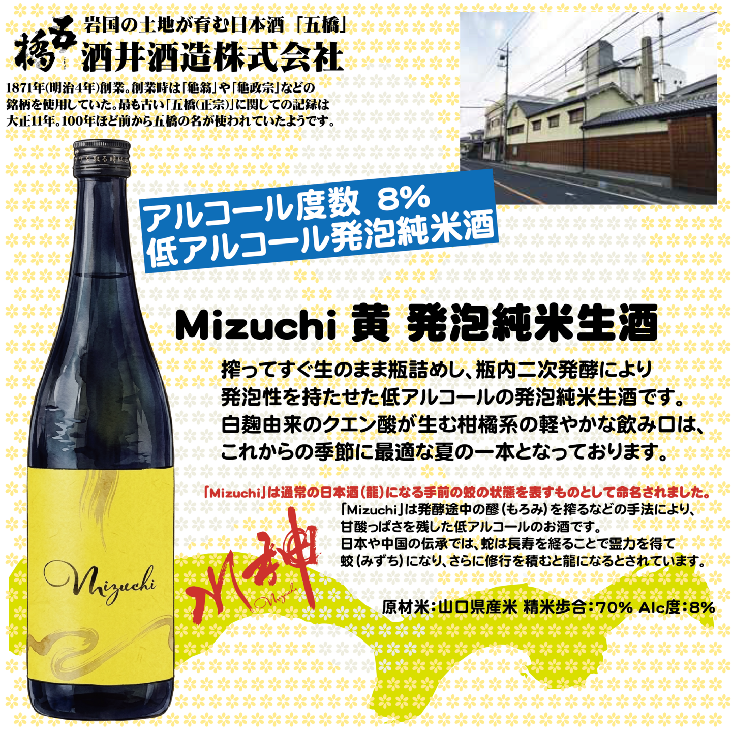 清酒「Mizuchi 黄 発泡純米生酒」